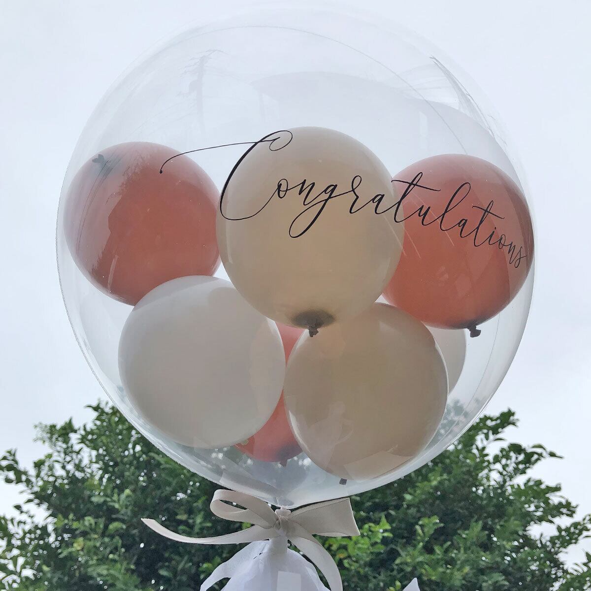 クリアバルーンの中に色付きゴム風船が入ったアレンジ