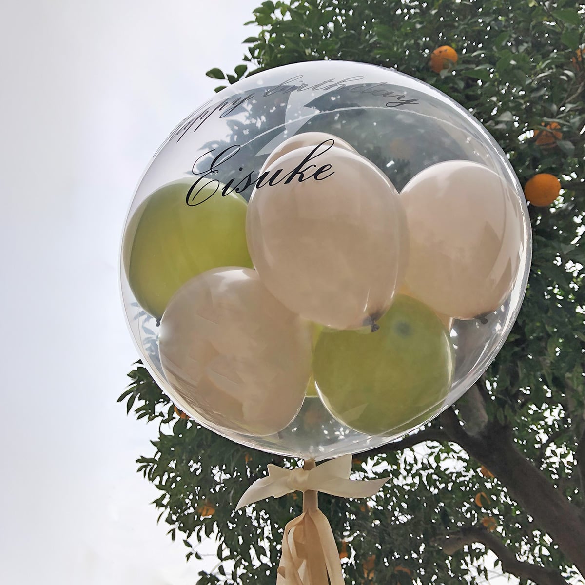 クリアバルーンの中に色付きゴム風船が入ったアレンジ