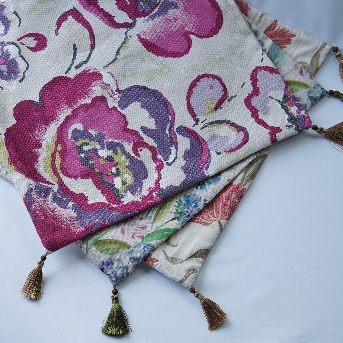 四つの角には、ナイロン製の光沢のあるベージュ系タッセルを付けました。