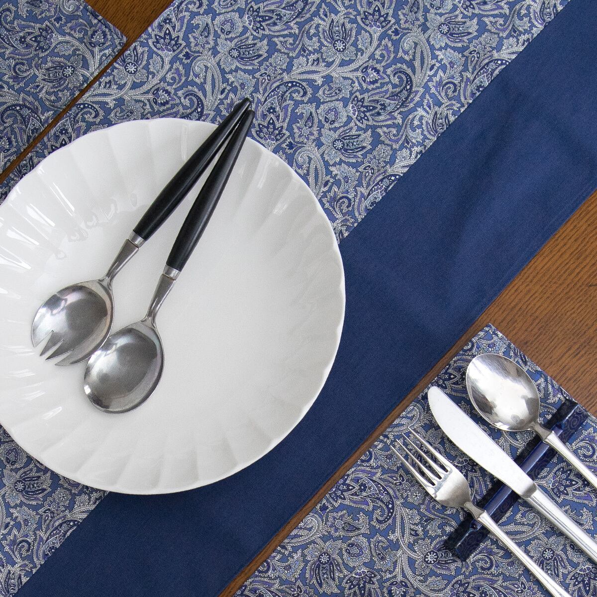 アメリカ輸入生地 テーブルランナー 150×30㎝ ペイズリー柄ブルー