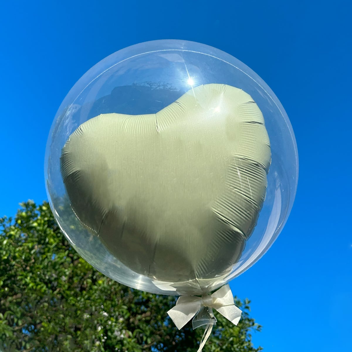 クリアバルーンの中に、ハート型フィルムバルーンの入ったアレンジ