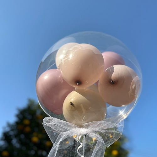 クリアバルーンの中に色付きゴム風船が入ったアレンジ