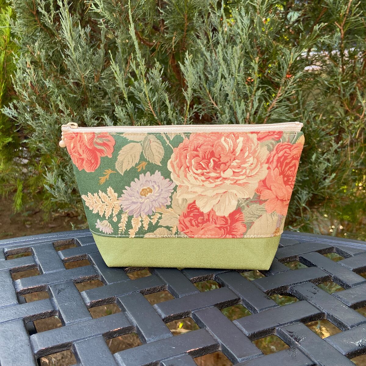 輸入生地 インポート生地 小物入れ ポーチ お稽古 レッスン 習い事 普段使い 大人 通勤 誕生日 贈り物 エレガント お出かけ プレゼント ギフト テキスタイル おしゃれ アメリカ ラルフ ラルフローレン アンティーク 緑 グリーン バラ ローズ ボタニカル リーフ 花柄 フラワー 植物 gladshop グラッドショップ